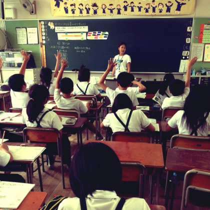 元気よく自分の意見を発表しています。