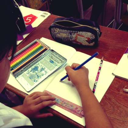 わかりやすいように、色鉛筆を使って上手にノートをとっていました。