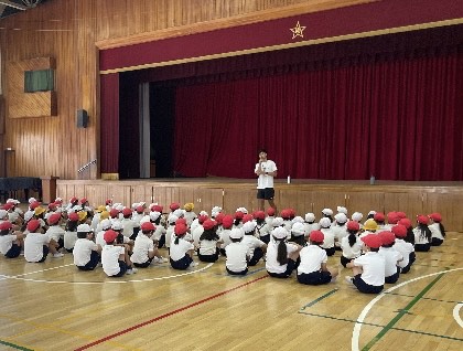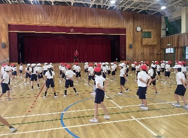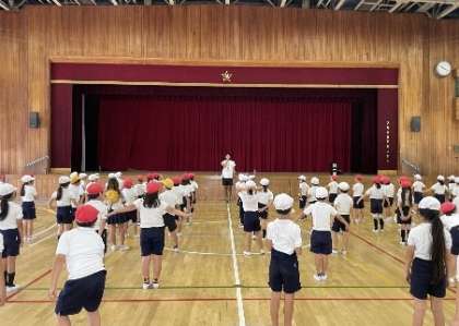 初めに、先生からダンスのコツとして「笑顔」「すばやい動き」の2つを教えてもらいました。子どもたちはコツを意識しながら、毎日元気よくダンスの練習に取り組んでいます。