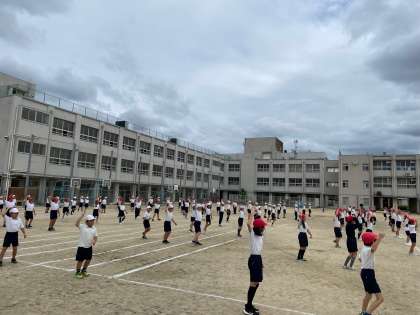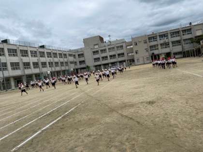 雨が降らず運動会の練習をすることができました。団体競技の『台風の目』の練習です。きびきび行動できています。楽しさの中に真剣さが見える良い雰囲気の練習でした。