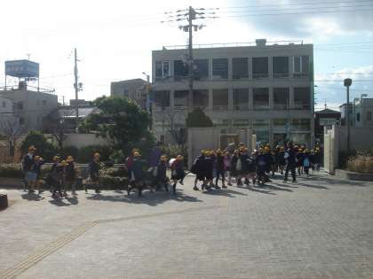 火災や地震があったなど非常時の下校の練習でしたが、異学年で集まり、高学年を中心に教えあったり話し合ったりする様子がたいへんほほえましかったです。頼もしいお兄さん・お姉さんぶりでした。