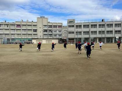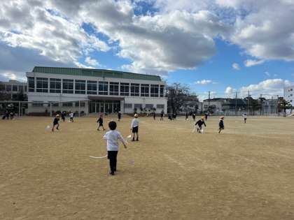 生活科の学習で作った凧で、凧揚げをしました。どの子の凧も風に乗って高く揚がりました。凧揚げにはとてもいい風が吹いていて、風の向きや糸の長さを調整しながら上手に揚げられるようにもなり楽しい学習になったようです。凧を持ち帰りましたら、ご家庭でも凧揚げを楽しんでみてください。