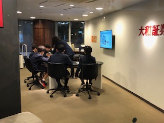 この会社では、やや難しそうな顔で座っています。