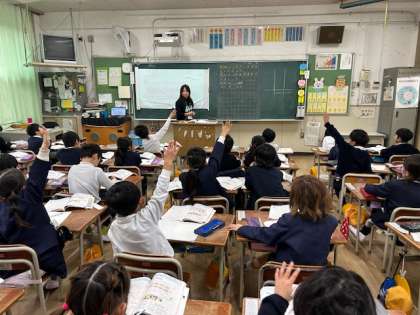 1年生の算数科では、100より大きい数の数え方や並び方を学習していました。少ない方から順番に並べて言えることや、大きい数から下がって考えたり、唱えたりしていました。学習が進んでいくと、大きな数の足し算や引き算の学習に入っていきます。自信満々に答えている様子がたくさんみられました。