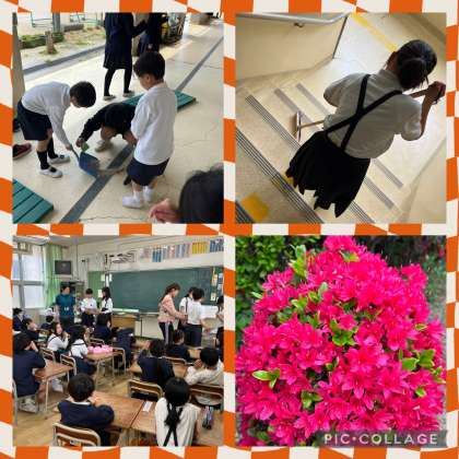 掃除時間の前に来て、階段をきれいにはいてくれていた4年生。いつもありがとう!