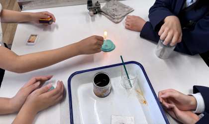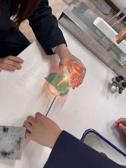 6年生では、理科で「ものが燃えるしくみ」を学習しています。「あついから気をつけや!」「石灰水が白く濁ると、乳酸菌のジュースみたい!」子どもたちは、たくさんの感想を持ちながら学習をすすめています。