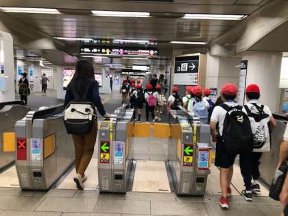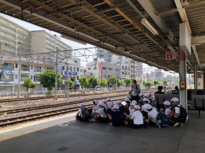 まぶしいくらいの天候に恵まれ、4年生が遠足に出発しました。