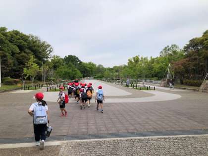 大きな道路にかかる橋を渡り、遊具のある方をめざします。