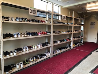 玄関を入ると、こんなに大きな下足棚が。平野小とあともう一つの学校が泊まれる規模の宿舎です。そしてずっと進むと…