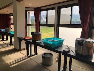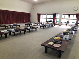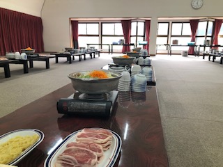 高原がよく見える3階に大広間があり、こちらで食事をいただきます。