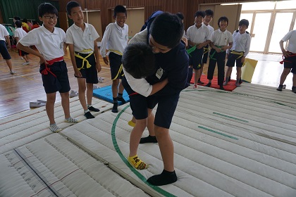 力いっぱい相手を投げたり,押したり,土俵際でしぶとく残ったり…と大盛り上がり。