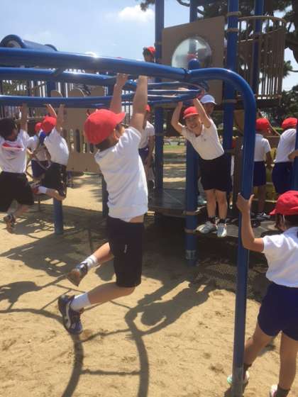 荷物を置いて、遊具で元気に遊びました!