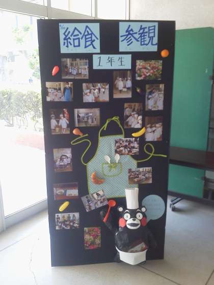 PTA広報委員会の方が、1年生の給食参観の様子をパネルにして、小学校の玄関に掲示してくださっています。特に1年生保護者の皆さん、日曜参観でご来校の折にぜひご覧ください。
