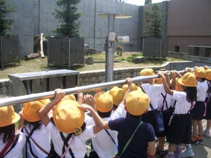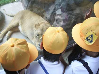 動物園に着くと、荷物を置き、動物を見て歩きました。例年に比べると空いていて、ゆっくりと見ることができました。人気の動物(ライオンや象、きりん、ペンギンなど)の前になると、子どもたちのテンションもあがり、大喜びでした。