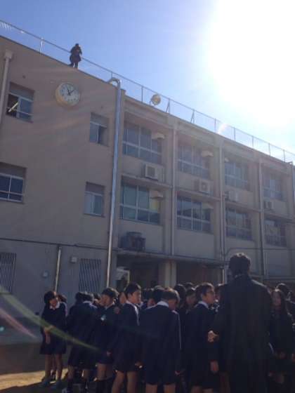 集合写真はカメラマンさんが屋上から撮ってくれるのですが、太陽がまぶしい!