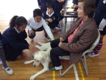 4年生は特別支援教育の取り組みとして、道徳の「介助犬ターシャ」の学習をしました。今日はゲストティーチャーをお招きし、盲導犬や盲導犬との生活についてお話を聞くことができました。自分が盲導犬を連れている人の立場に立って、目の不自由な人の気持ちを考えました。