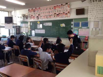 担任と少人数指導担当教諭とで2クラスを3つに分けて、いつもより少ない人数で授業を行いました。