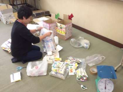 各学級で集めたベルマークを教室を回って回収し、それを仕分けする作業です。