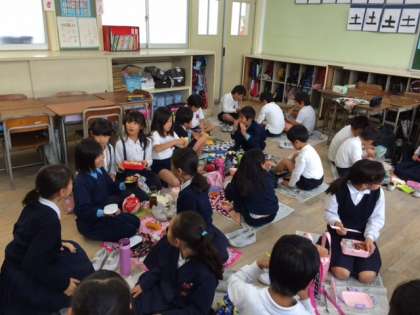 遠足が延期になったため(11月9日になりました)お弁当はそれぞれの教室で食べました。お家の方に作っていただいたお弁当が大好きな子供たちは給食の時間を楽しみにしていました。そしていざ給食の時間!いつも楽しそうな雰囲気ですが、今日はいつにもまして会話が盛り上がっていました。