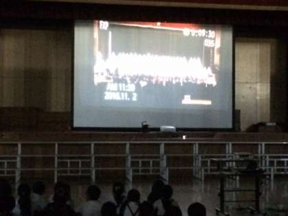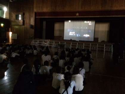 自分たちがどんな風に発表しているかを見ることも大切です。明日の本番に向けて歌や合奏の出来を自分たちで見て聞いて確かめました。途中から楽しくなってきて、ビデオに合わせて手拍子したり歌ったりしていました。
