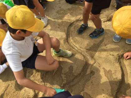 土が侵食されていく様子を見た子どもたちは「本当の川みたいや!すごい!」と感心しながら学びを深めていました。
