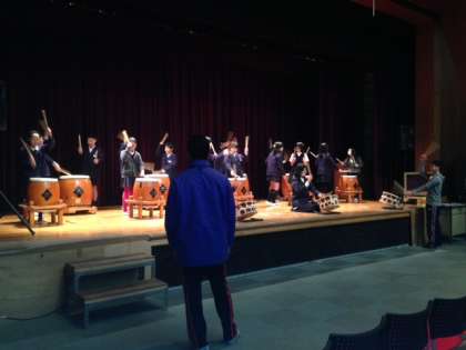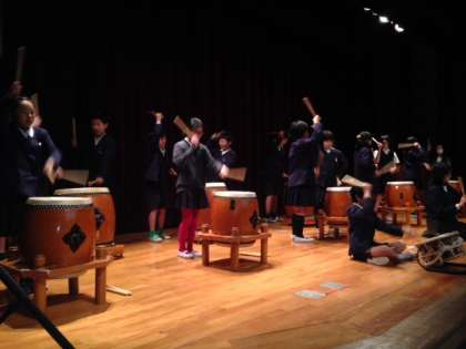学校公開での太鼓の学習の続きなのですが、人数が多いため、2つのグループに分けて行っています。