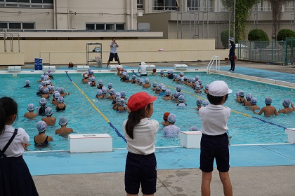 楽しかったプールが終わり,子どもたちはとても名残惜しそうにしていました。