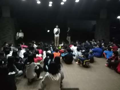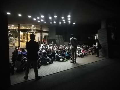 宿舎に到着しました。部屋割り、避難訓練をすませ、いよいよ夕食です。