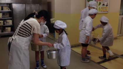 今日も残食率がとても少ない平野小学校。給食当番も、おかわりもがんばっていました。