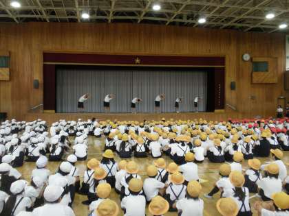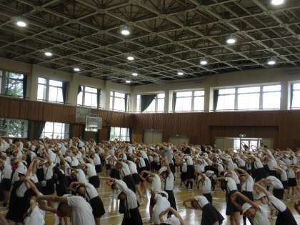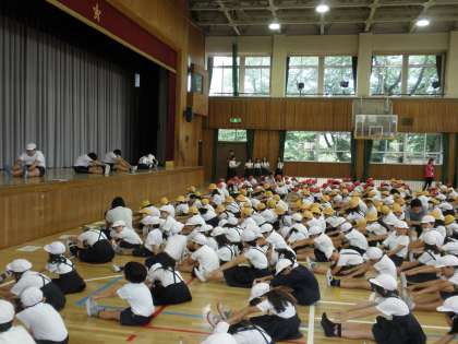6/7(木)の朝の時間に体育集会をしました。今回はストレッチ運動を行いました。体育委員会のお手本を見て、しっかりと体を動かしました。