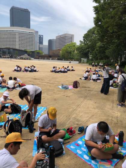 早く食べた子どもは、太陽の広場で元気に走り回っていました。