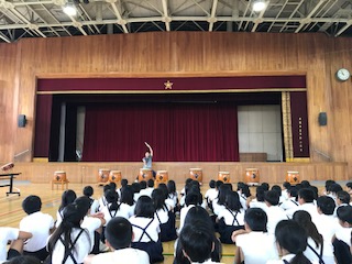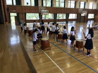 みんなで合わすことに意味があるというゲストティーチャーからのお話を受けて、周りの音を聞いて太鼓の響きを感じながら演奏しました!