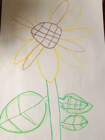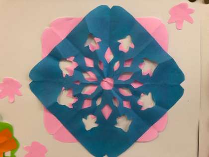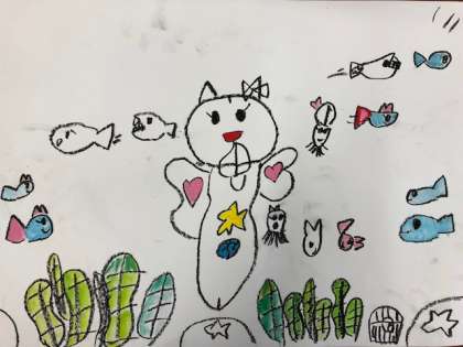 2年生になって使い始めた絵の具も上手に使っています。いろいろな色を作ってカラフルな絵画に仕上がってきています。はさみは写真のような模様を作ったり、自分で書いた絵を切り抜いたりして作品を作っています。器用にはさみを扱える子が増えてきました。