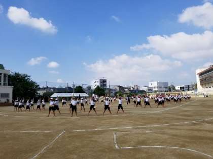 本日一時間目にエイサーの隊形練習をしました。