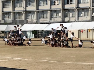 これまでの練習は悪天候のため、運動場での練習はほとんどすることができませんでした。そのため、組立体操の「架け橋・ドミノ倒し」、「クラス技」は今日初めて運動場で行いました。組立体操のテーマは『挑戦〜try everything〜』です。自分と向き合って挑戦し、そして仲間とともに挑戦することができるように指導してきました。