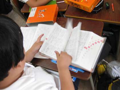 4月に使い方を学習したばかりの国語辞典を使って、慣れない手つきで辞典をめくり、たくさんの言葉を調べました!