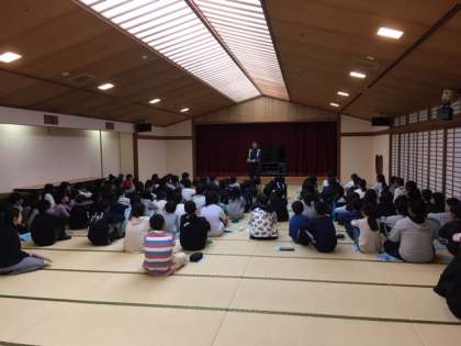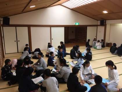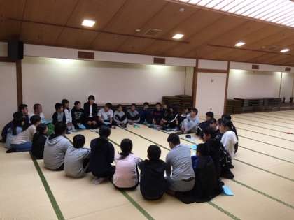 みんなで大広間に集まり、今日1日の振り返りをしています。