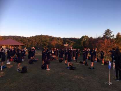 2日目になりました。朝日を浴びながら朝の会をしています。
