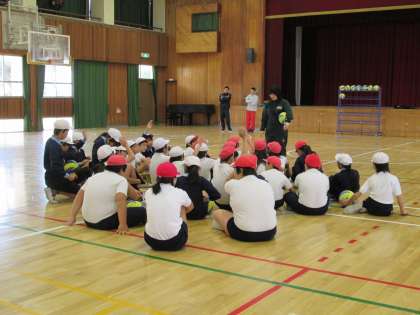 平野北中学校の先生に来ていただいて体育の授業をしていただきました。