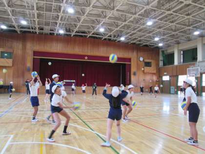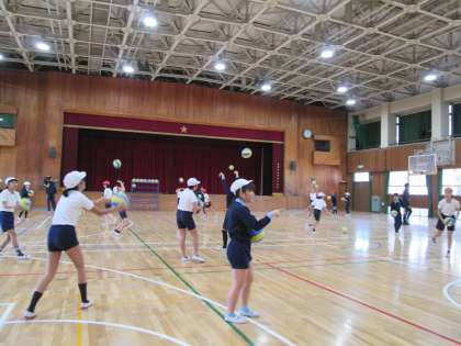 昨日から「バレー早くやりたい!!」と、授業を楽しみにしていた子どもたちは、中学校の先生に教えていただいてとても嬉しそうでした。