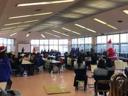 はじめは、平野北中学校の吹奏楽部のみなさんが、クリスマスの曲を中心に演奏してくれました。