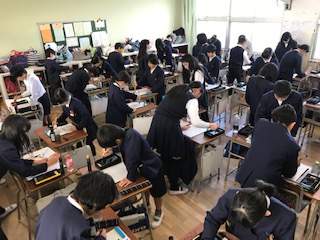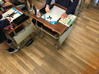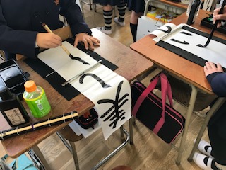 みんなとても集中して漢字と仮名の文字の大きさなど、どう書けばバランスが整うのかを考えながら書きました。