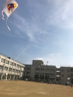 生活科の昔遊びの学習で、凧を上げて遊びました!