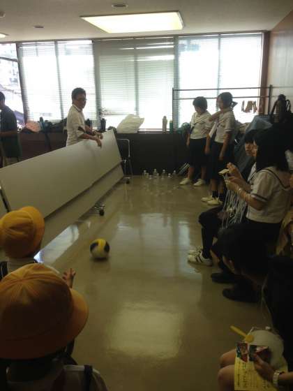 ペットボトルボーリングです!使うのは普通のボールで、指を入れる穴がなく、ボール自体が軽いので、見た目より難しいスポーツナンバー1です!