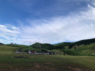 朝はとても涼しく、鳥や虫の声が聞こえるハチ高原の朝です。