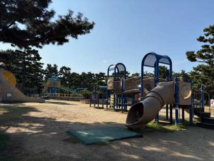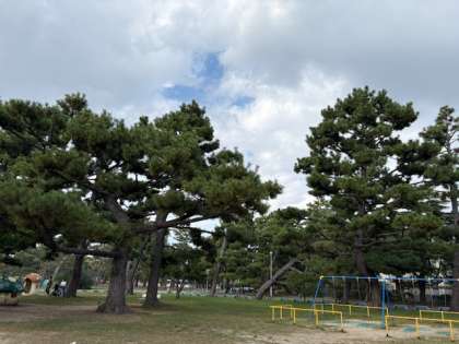 お弁当、おやつの後は2つ目の遊具広場で遊びました。やはり立派な松林の中にあります。