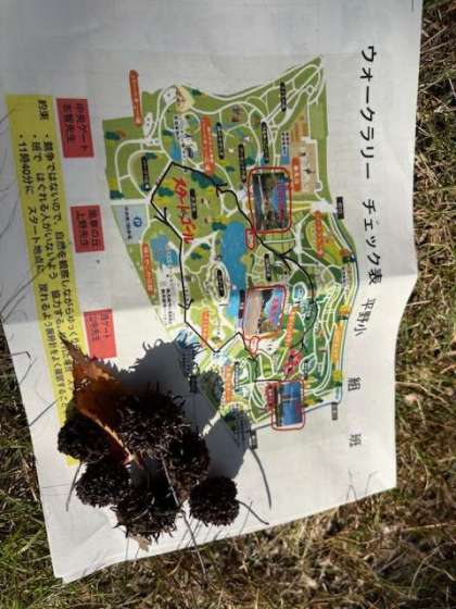 30cmの小枝、3種類の落ち葉、100gの石、のお題を探しながら歩きます。