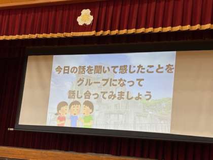 卒業生で94才の河田さんのお話、高校の皆さんからの数々の問いかけ。