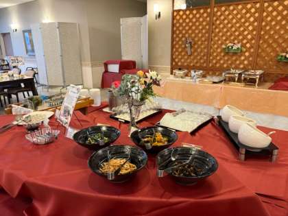 ずらり並んだバイキング形式朝食に早くも目がキラキラしています。