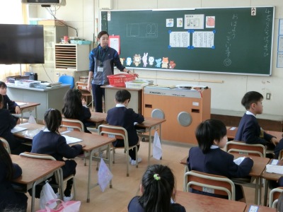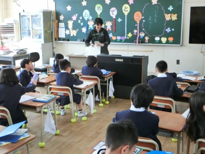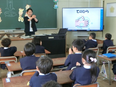 4月8日(月)、2年生から6年生が体育館で「始業式」をしている間、1年生は教室で活動をしていました。